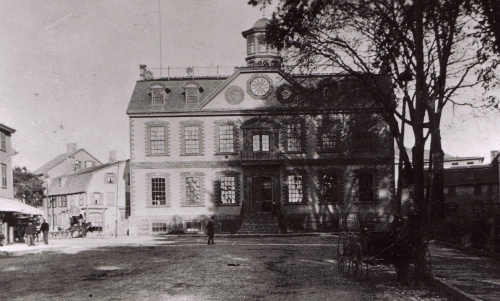 This shot was taken in Washington Square (formerly called The Parade), facing the entrance to the Colony House. The Colony House, completed in 1741, was the home of the Colonial, and later, the State Legislature of Rhode Island.